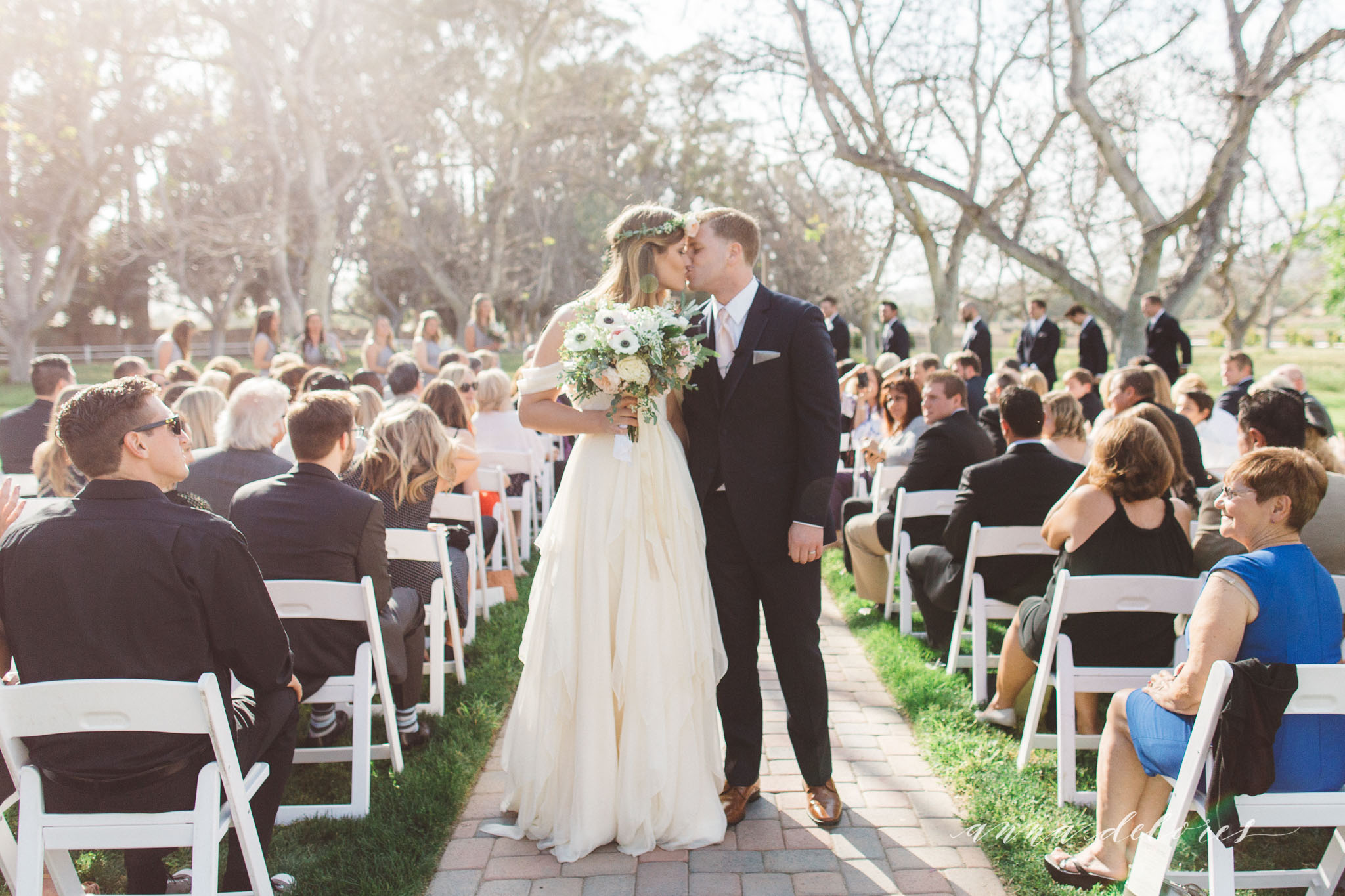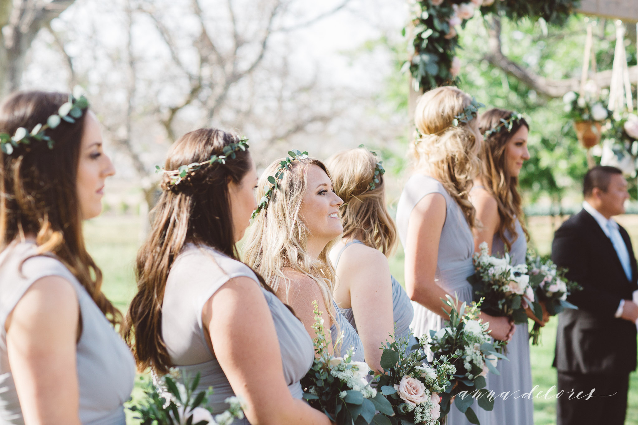 This beautiful day at the Walnut Grove wedding venue was filled with blush garden roses, eucalyptus, macrame, flowing dresses, and garlands. The bride’s vision came together perfectly to create a whimsical atmosphere as the bride and groom said ‘I do’ under the walnut trees. See it featured on Style Me Pretty