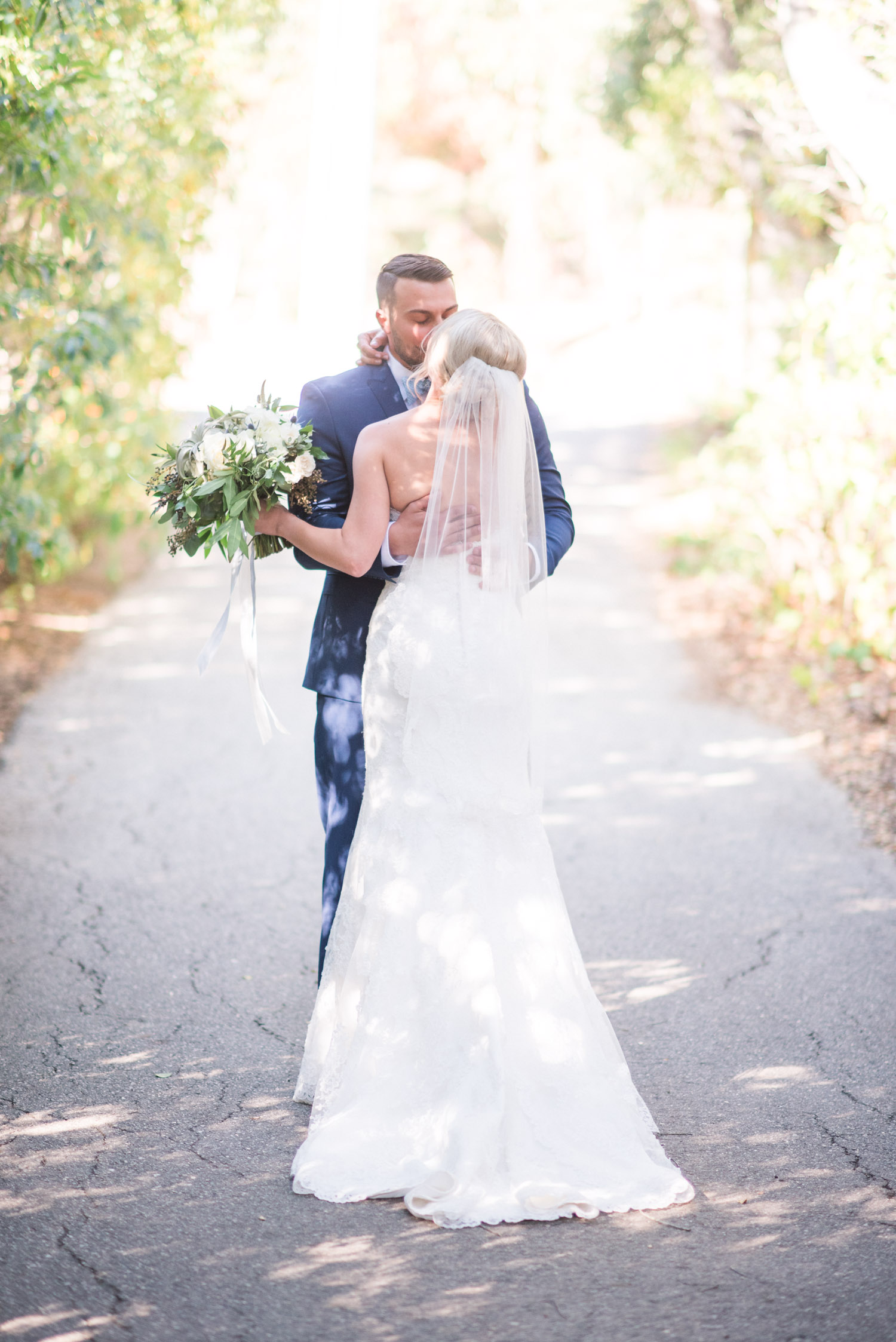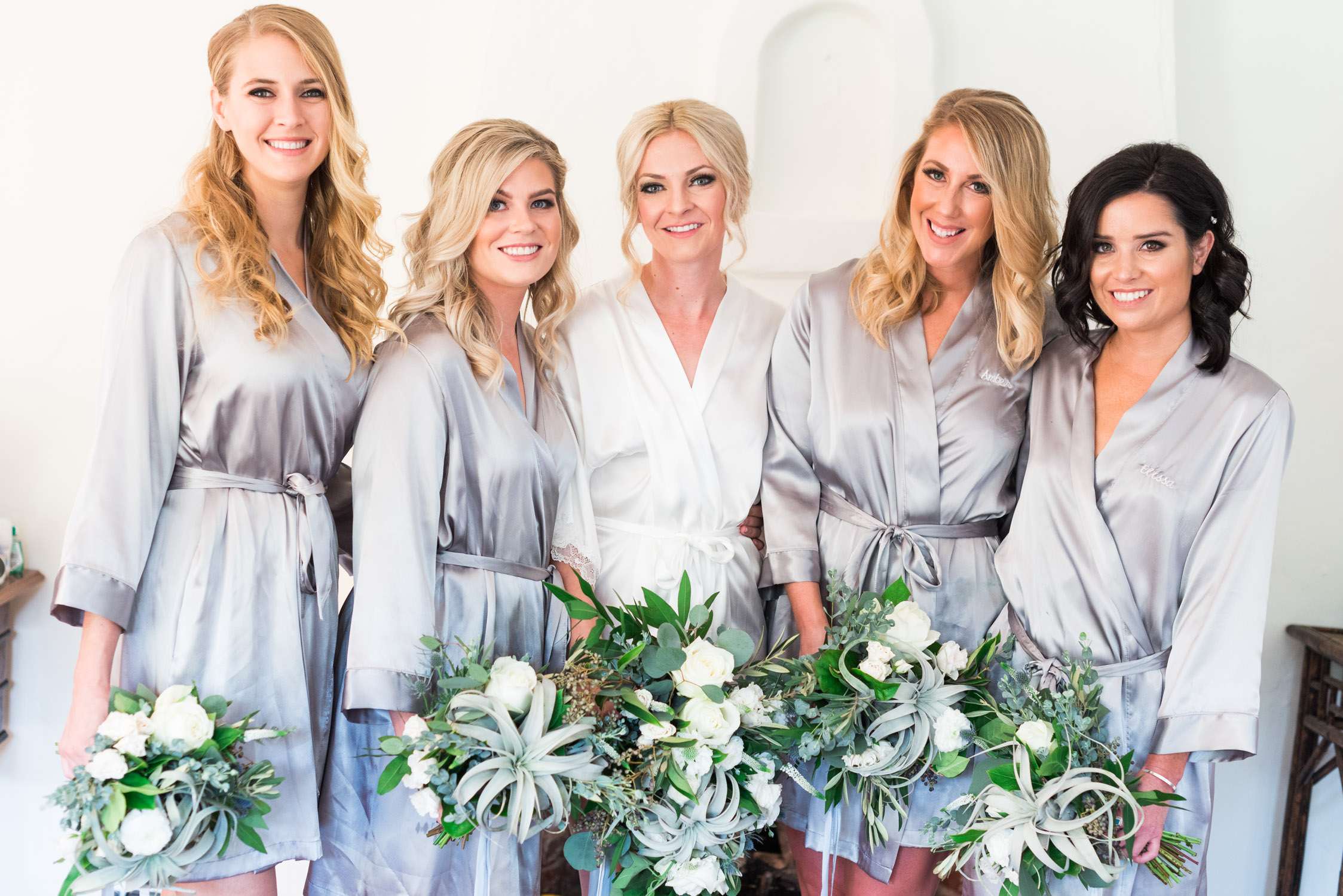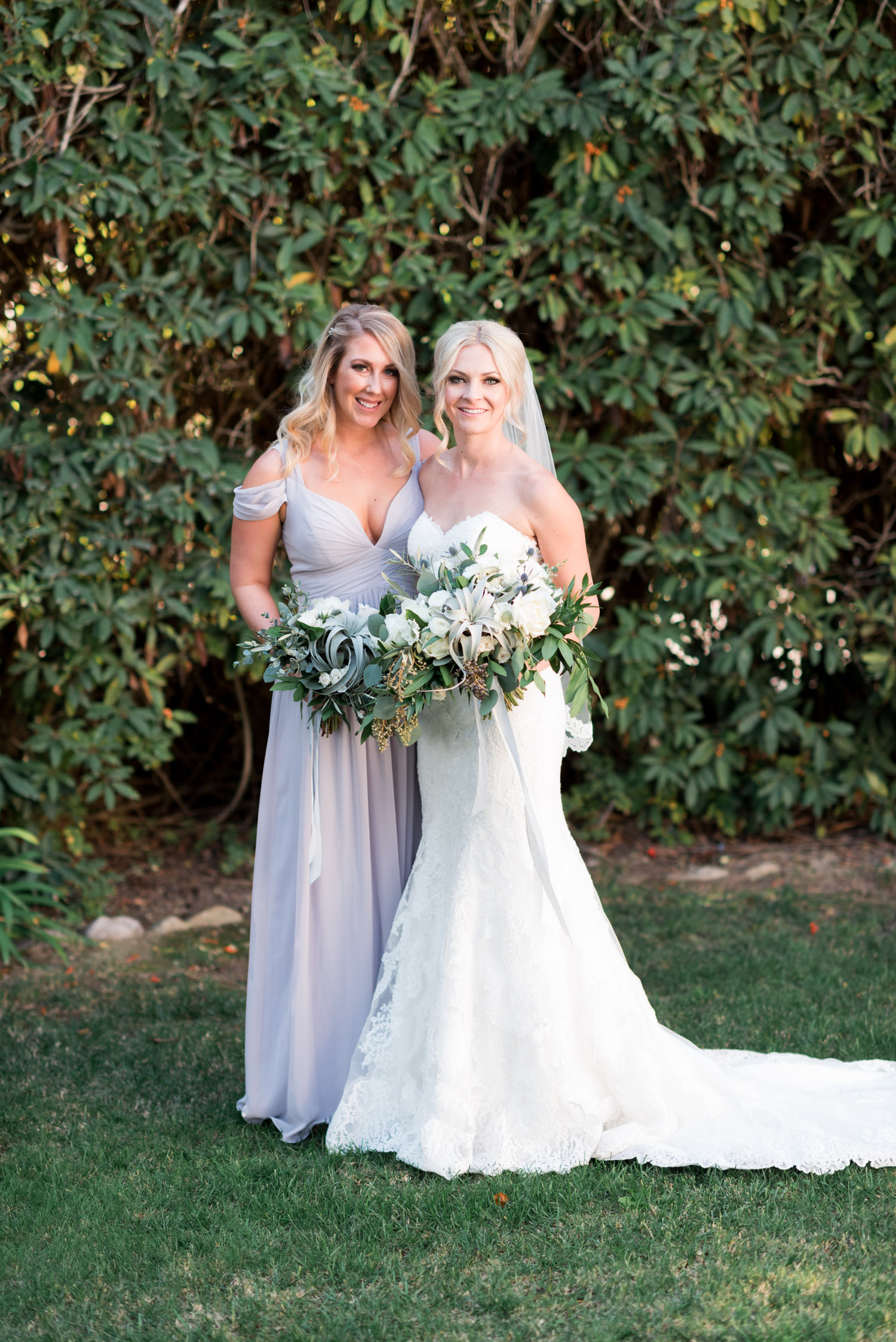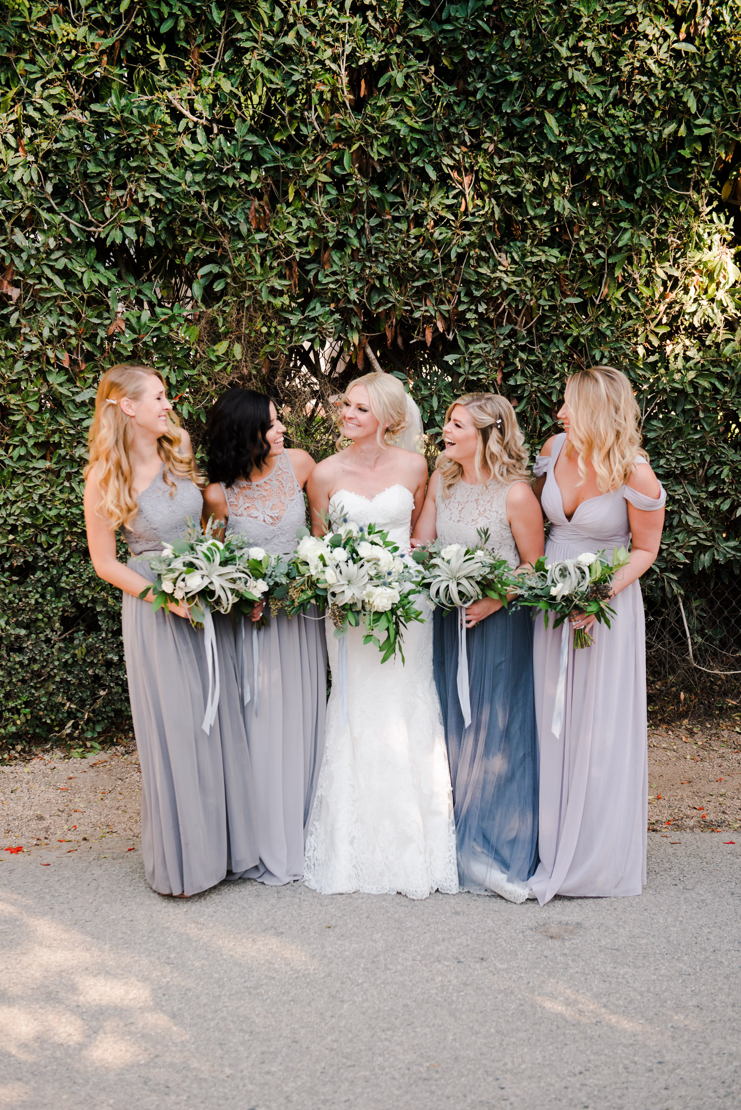 These bouquets were made up of a lush mix of greenery, air plants, polo roses, blue thistle and privet berry. This color combo when great with the dusty blue bridesmaids dresses. Hand dyed silk ribbons made by me! Photography by my hubby Craig Reynolds Photography!