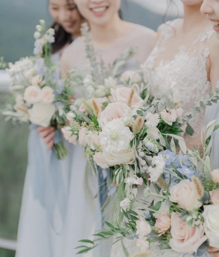 Bridesmaids bouquets: Similar to bride’s bouquet but smaller.